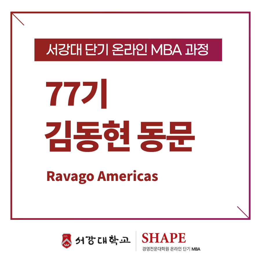 오프라인 과정의 시간적, 비용적 부담을 고려했을 때, 온라인으로 제약 없이 수강할 수 있는 서강대 SHAPE의 단기 MBA 과정은 제게 가장 매력적이고 현실적인 선택지였습니다.
